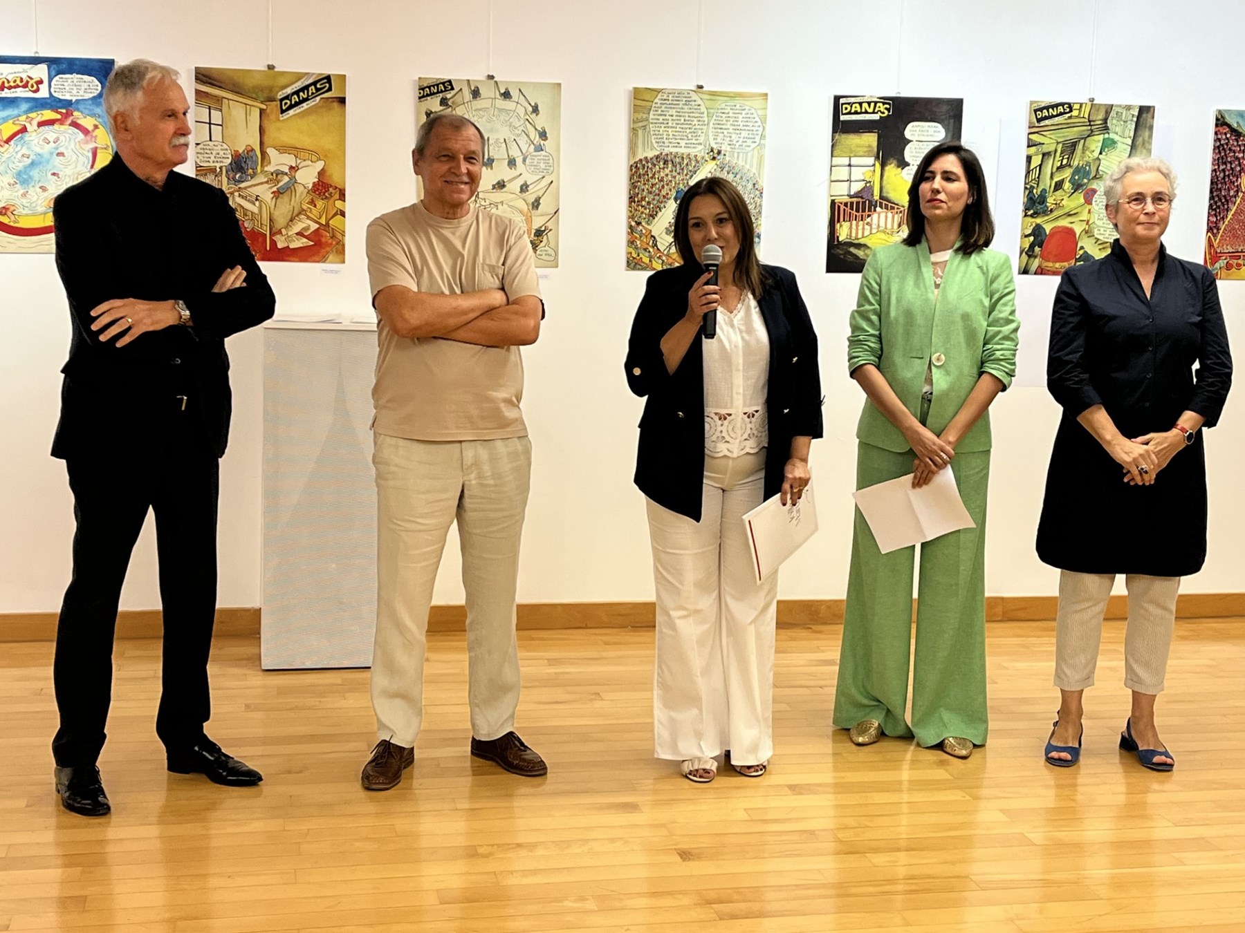 The exhibition was officially opened by Rector Prof. Dr. Dragan Ljutić, with additional remarks by Prof. Dr. Ana Marušić and the artist himself. The program was moderated by Gallery Director Helena Trze Jakelić. In the exhibition catalogue, curator Tea Luburić described Marušić’s work for Danas as “a sharp satirical analysis of political and social life”, while the author emphasized the importance of seeing how contemporary students respond to themes drawn from previous decades.